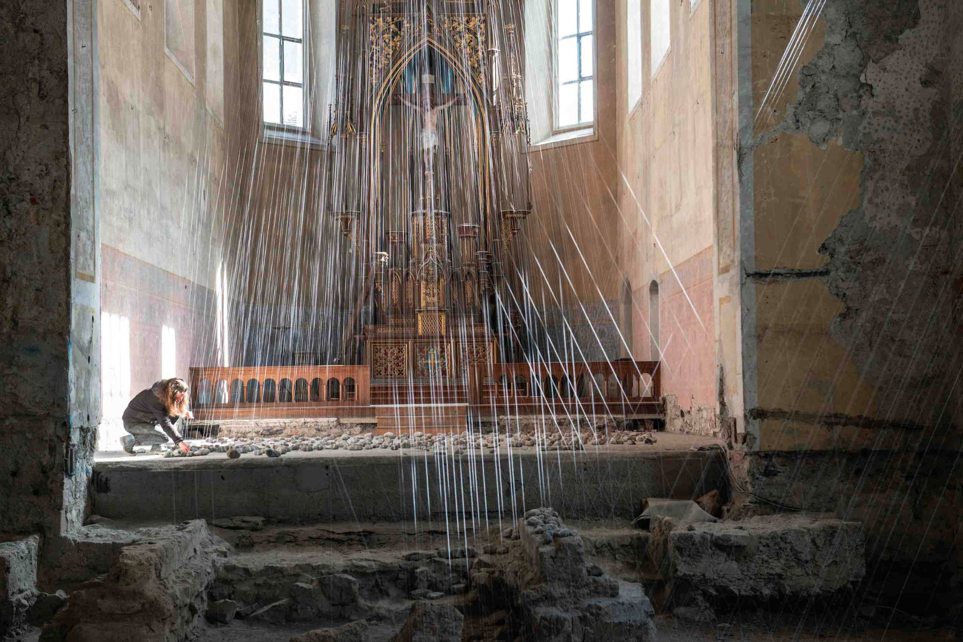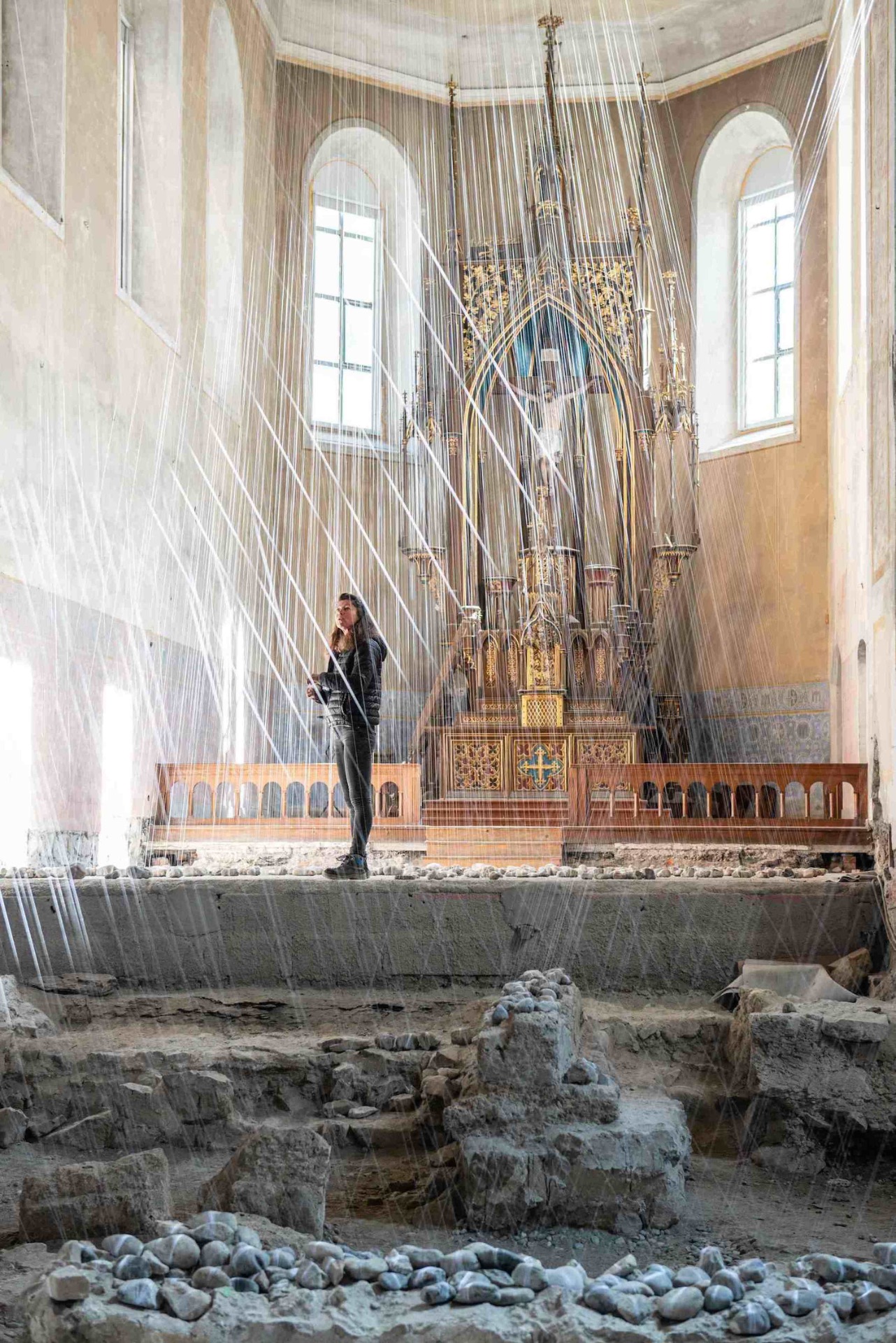 mit ihren speziell für die Räume entwickelten Rauminstallationen greift die Künstlerin ganz bewusst in den profanierten