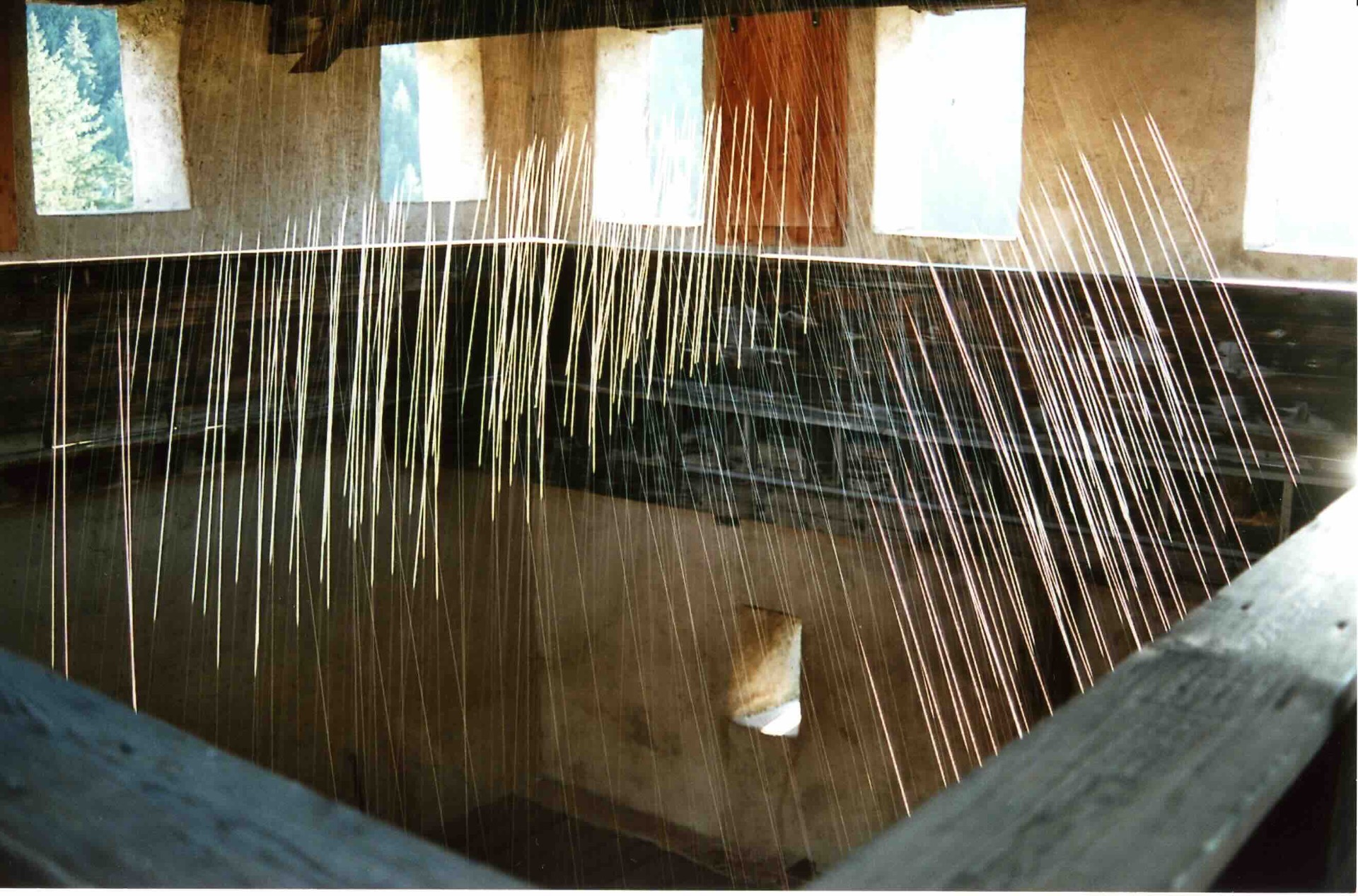 dünner weißer Seiden- oder Baumwollfäden, mit denen sie in Hunderten
